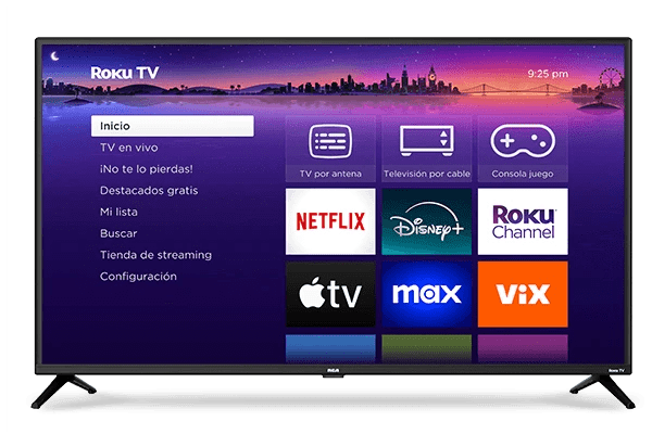 - Pantallas HD con el servicio de streaming HD de Roku. (Youtube, TV en vivo, Tubi, Pluto, Netflix, HBO) sin cortes 1080 HD.